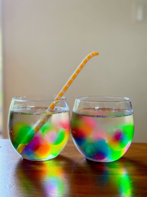 次はしっかりカラフルなゼリー、アガー、いろはす桃を準備し、リベンジしたいと思います。家族からはフルーツの提案もあったので、いちごやミカンなど、色々試してみようと思います。