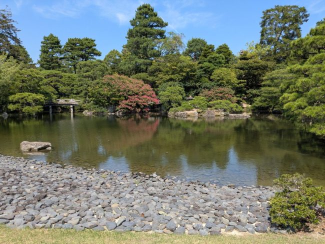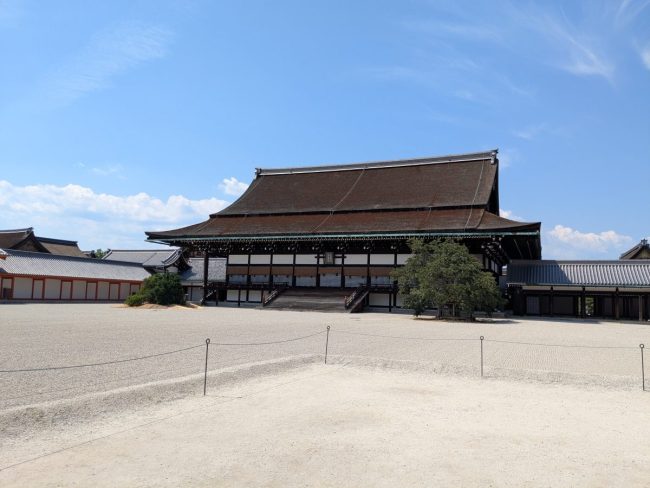 体感ですが庭園や木陰が多いおかげで京都御所内に入ると外気温が数度低く感じ、当日最高気温は35度近くあったのですが非常に気持ちよく回ることができました。