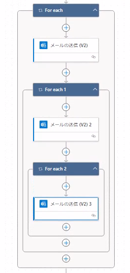 [For each]が重なっているフローは動かすことができたとしても、可読性が低いので後からメンテナンスするのが難しくなります。