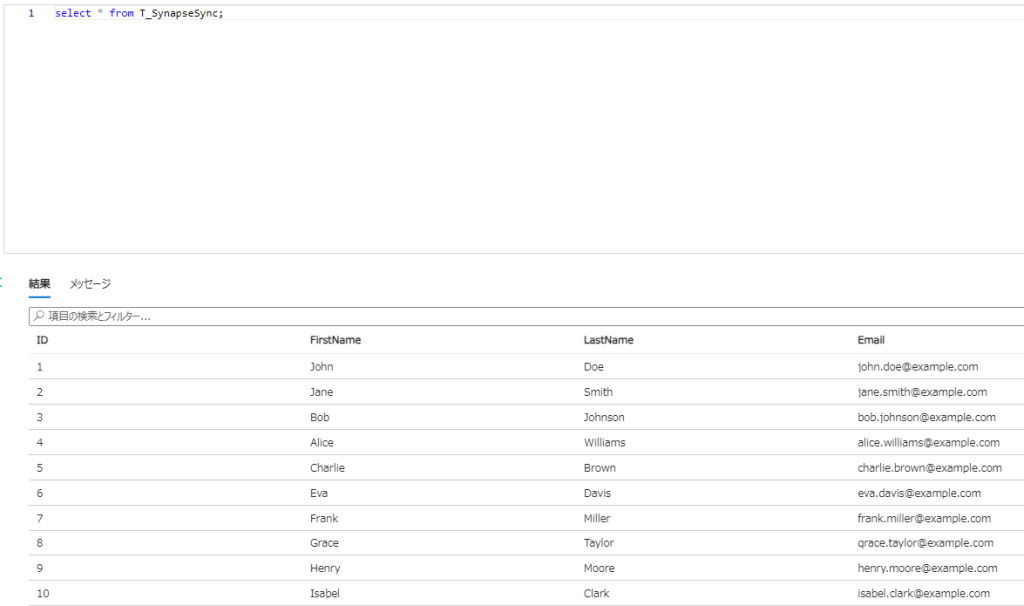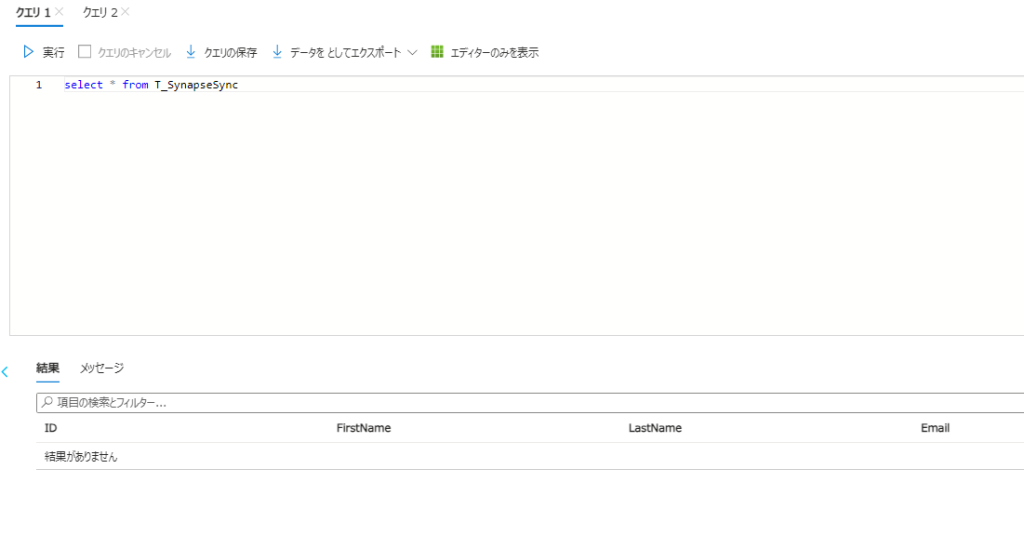 実行結果が上記の通りになります。ターゲットテーブルであるT_SynapseSyncにはデータが存在しませんでしたが、コピーアクティビティを実行したことでソーステーブルからデータがコピーされたことを確認できました。