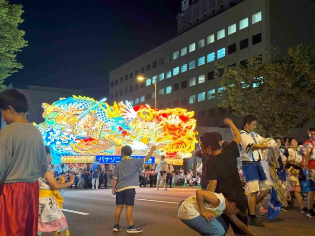 「NTTグループねぶた」さんです。子供が小さいときに、跳人で参加させてもらってました。弊社のくるみさんは毎年ばけとで参加しています。