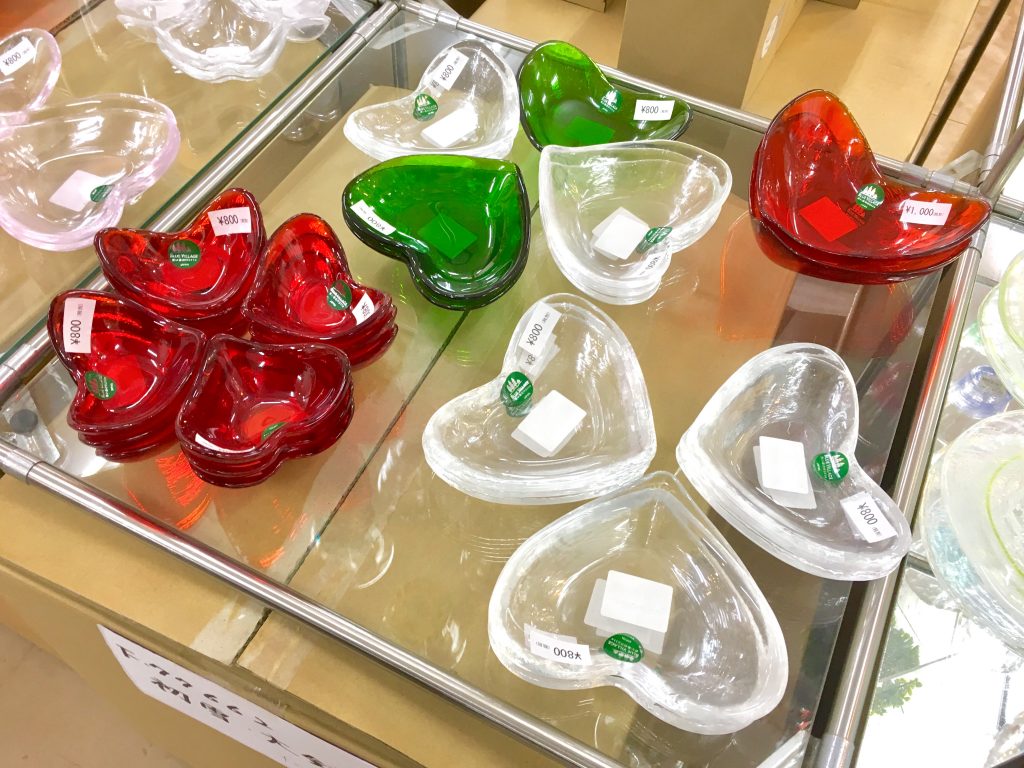 店内のあちこちにコップや盃やお皿、置物、醤油刺しなどの調味料入れや風鈴などの