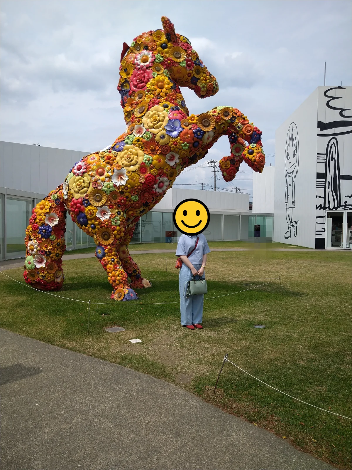 美術館がある官庁街通りには、戦前、旧陸軍軍馬補充部があったらしく、駒街道と言われているとのこと。この馬のアートは、美術館を訪れた人々を迎えるウェルカムブーケとして展示されています。 とても大きく、綺麗な馬のアートでした。