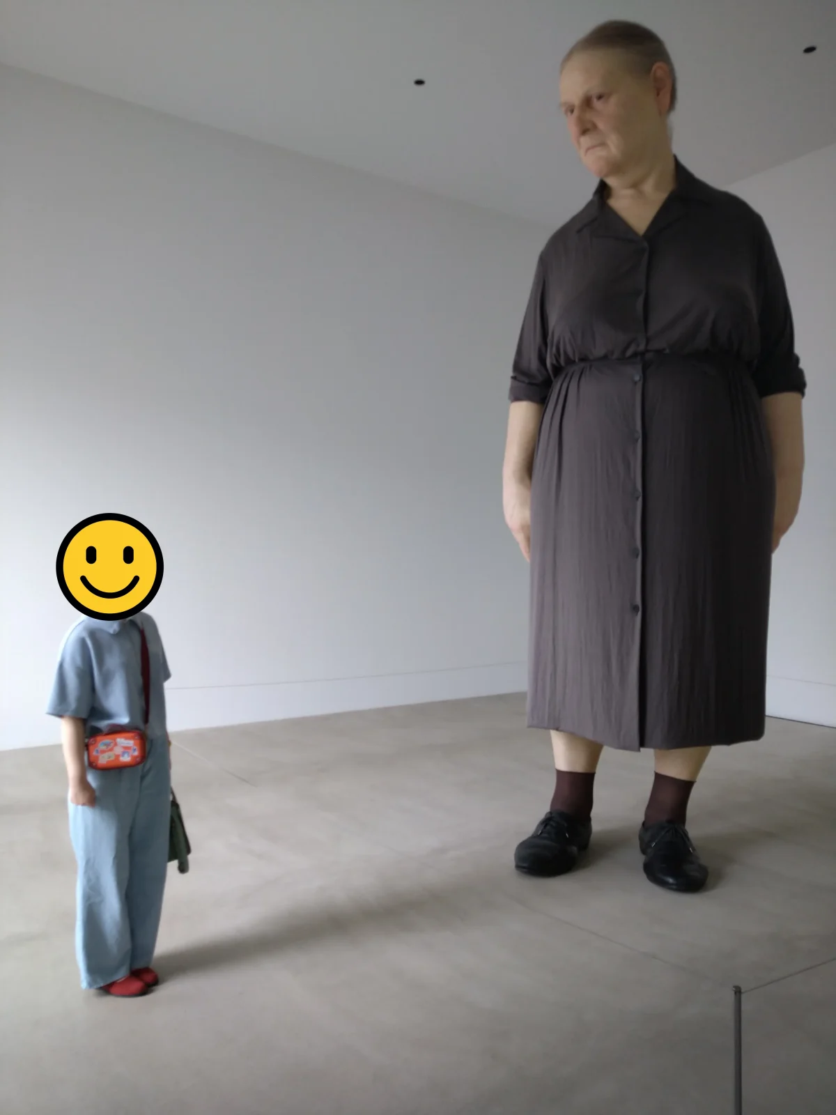 皮膚のシワ・たるみ、透き通って見える血管、髪の毛1本1本まで再現した、高さ4メートルのアート。