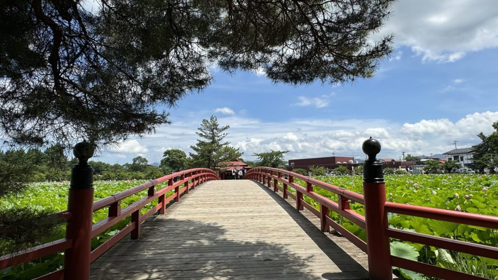 鏡ヶ池一面の蓮と蓮の花は本当に綺麗です。花を見る場合は朝~昼がおすすめ!