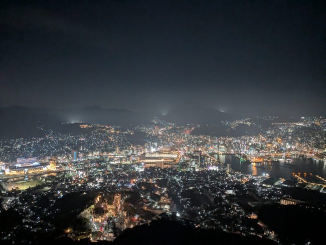 展望台から見下ろす夜景は、港町・長崎の地形を生かした立体的な光のパノラマであり、「世界新三大夜景」に選ばれるのも納得の美しさでした。