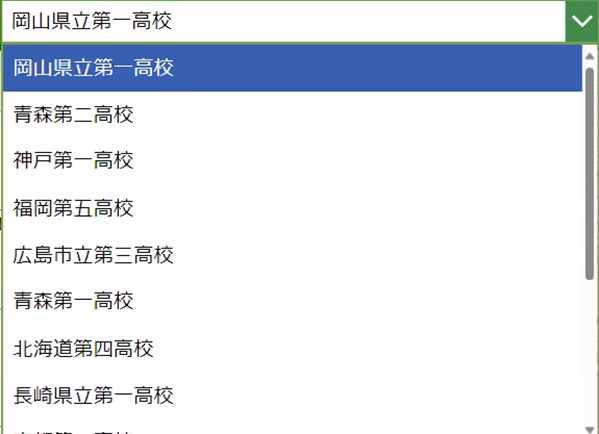 ①訪問した高校をドロップダウンで選択します。