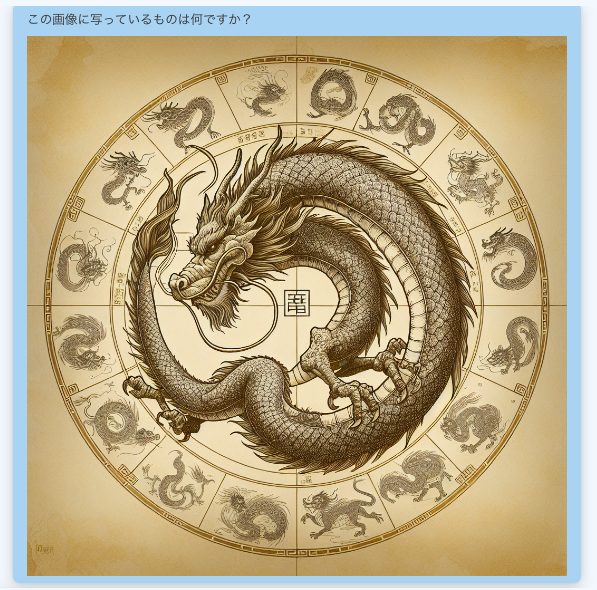 まずは、前回のブログで DALL·E3 に生成したもらった辰の画像を送信してみます。
