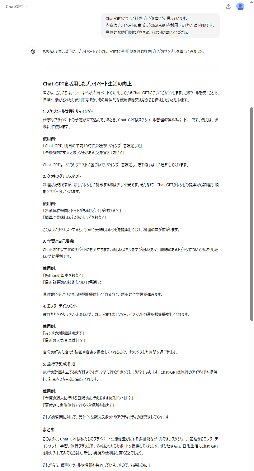Chat-GPTに実際に今回のテーマでブログを書いてもらおうと思います。
