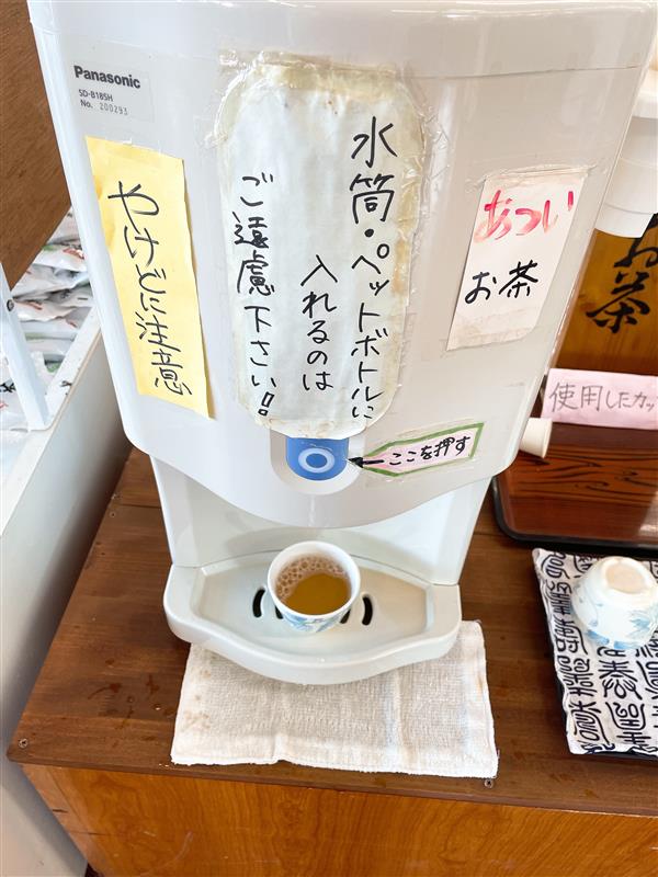 ※以前はやかんで提供されていましたが、現在はセルフ式の給水機から注げるようになっています。