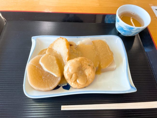 名物のおでんと「長生きのお茶」を堪能