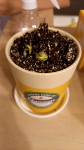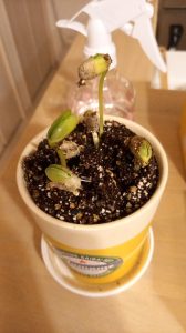 某店で売ってた枝豆栽培キットですが、種を撒いて3日後になります。