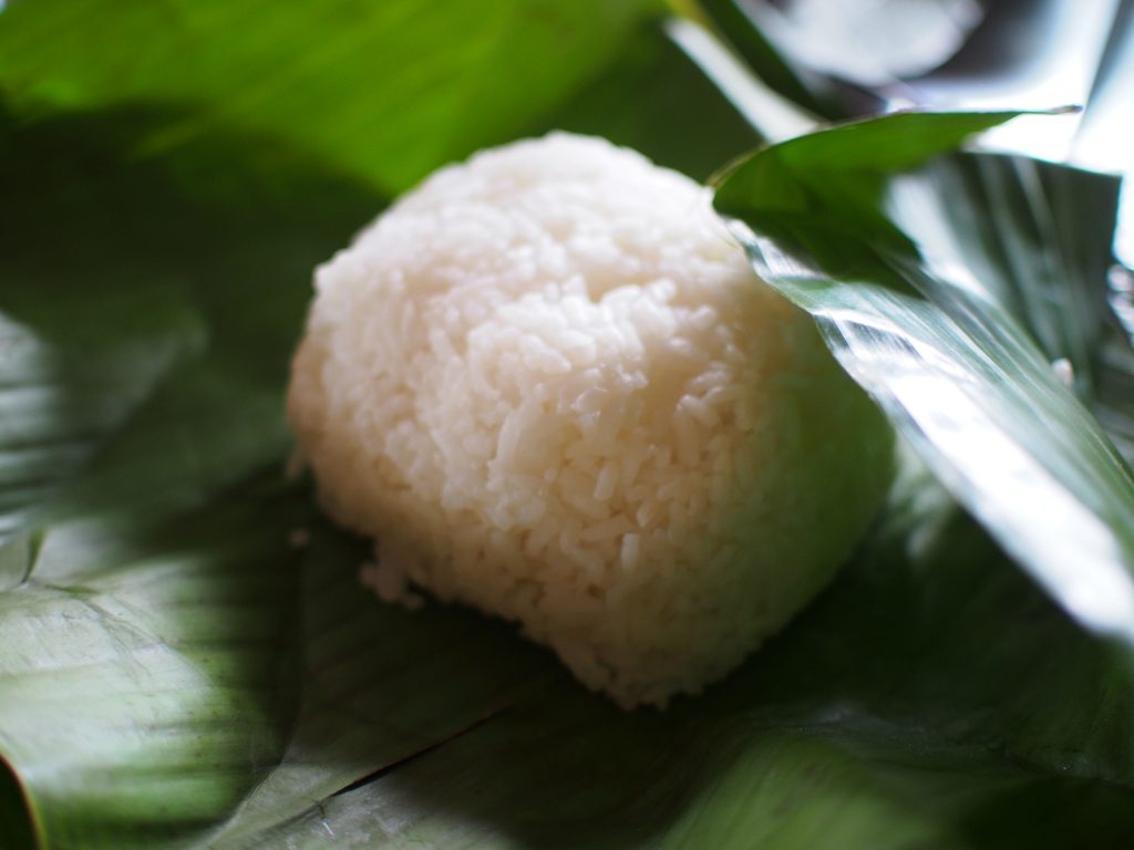 カレカレをいただいたレストランでは、こんな感じでバナナの葉っぱにくるまれてご飯が出てきました。
