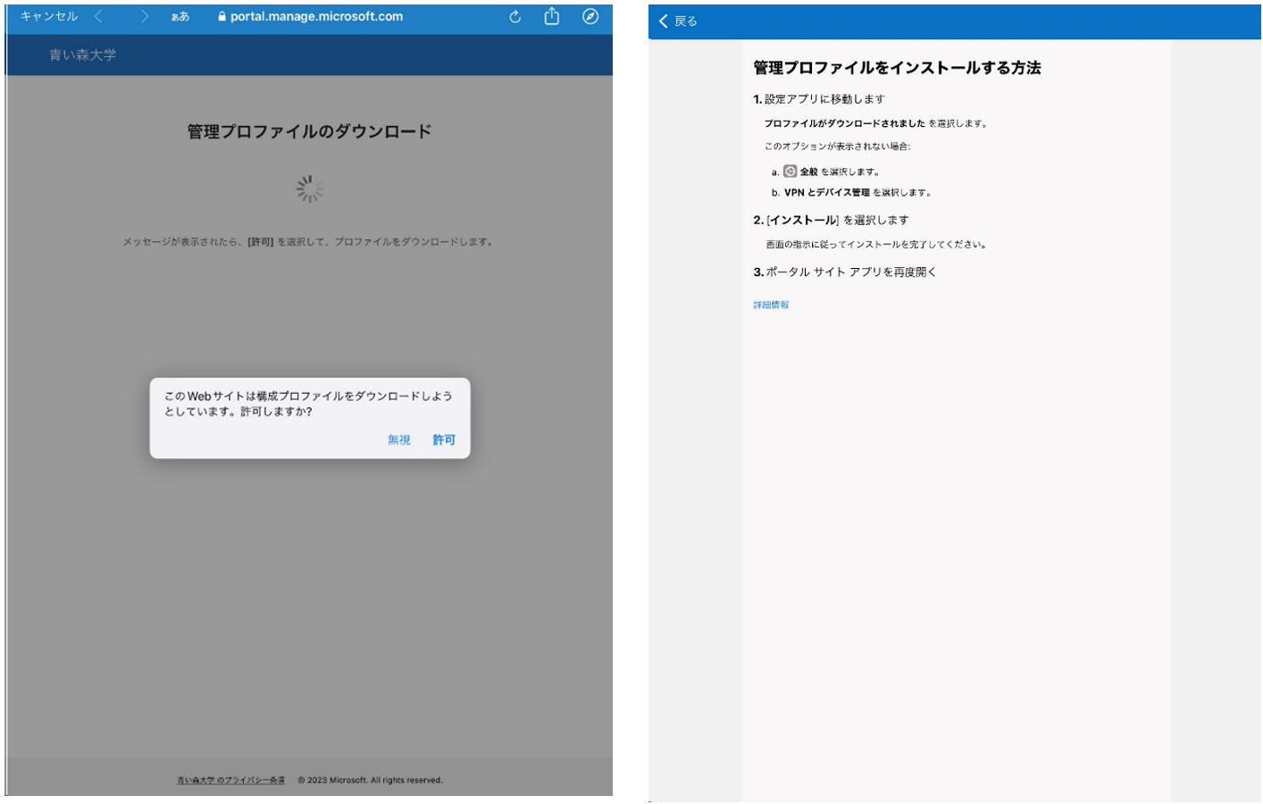 管理プロファイルをダウンロードし、インストールを行います。