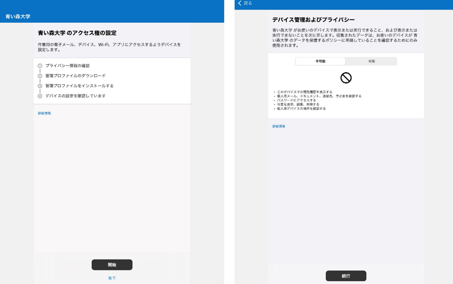 設定手順とプライバシーに関する内容が表示されます。(画像:iOS)