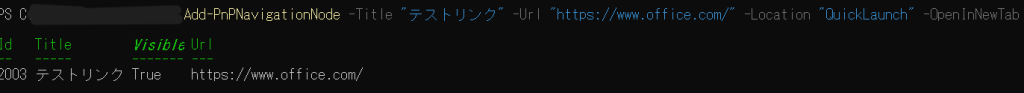 上記はSharePointサイトのナビゲーションに対してリンクを設定するコマンドです。