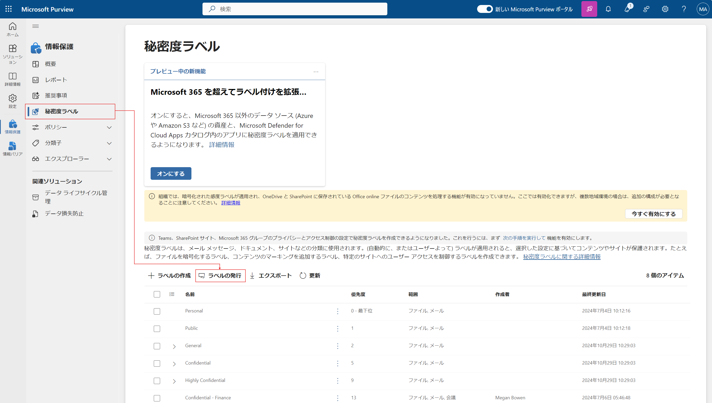 秘密度ラベルの発行(適用)