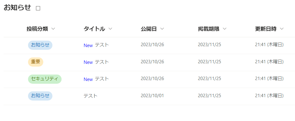 このように、分類項目に分けて色の表示を変更したり、公開日から7日以内の投稿のタイトルに「New」を表示したり様々なカスタマイズが可能になります。