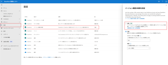 【参考】サイトのバージョン履歴の制限を変更する – Microsoft Learn