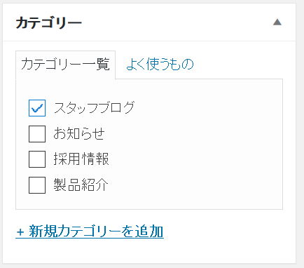 既に作成されたカテゴリーは「カテゴリー」一覧に表示されますので、今回はチェック